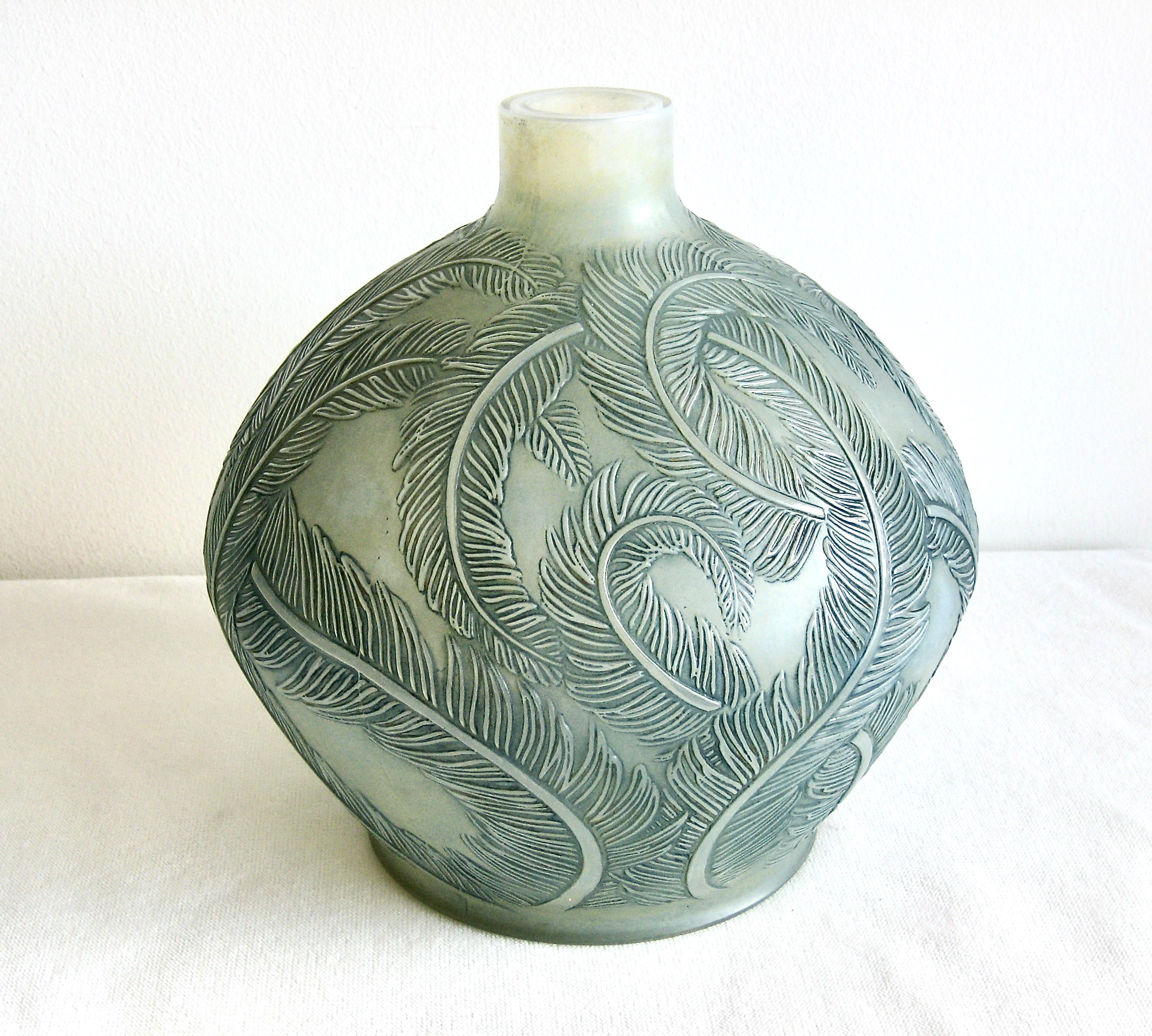 Rene Lalique aimed at popularizing art and making it accessible to everybody and not only to the upper class of the time. He started with his jewellery, using common materials but with such incredible imagination and clever design that they were immediately recognized as masterpieces. R Lalique started experimenting with glass and making some exclusive unique pieces but soon started to mass-produce to make it available to a wider range of people. All pieces, even though being mass-produced, were all hand finished, and of the highest quality. Hence, as they were finished individually, they all have certain characteristics and differences in quality and colour, and some degree of impurity or cooling lines all quite acceptable and common on most thick-walled pieces. Lalique also added a patina to some of his pieces to enhance the design, in a variety of colours. When taking all this into account, one can see how so many details can differentiate the price of a piece, even though to the laymen they might look the same.